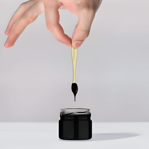Use the provided measuring spoon to scoop a pea-sized amount (about 250–500 mg) of Shilajit resin from the jar.